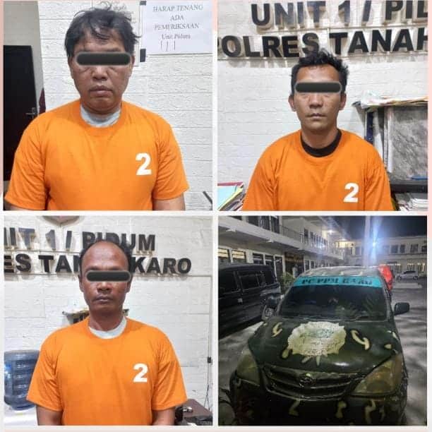 Hasil penyelidikan Satreskrim Polres Tanah Karo membuahkan hasil. Pada Rabu (30/7/2025) sekitar pukul 16.00 WIB, tim berhasil mengamankan tiga tersangka di Simpang Tiga Kicat, Desa Sukandebi, Kecamatan Namanteran.