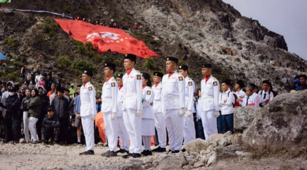 Semarak HUT RI ke-80, Ribuan Pendaki Antusias Kibarkan Merah Putih di Puncak Gunung Sibayak