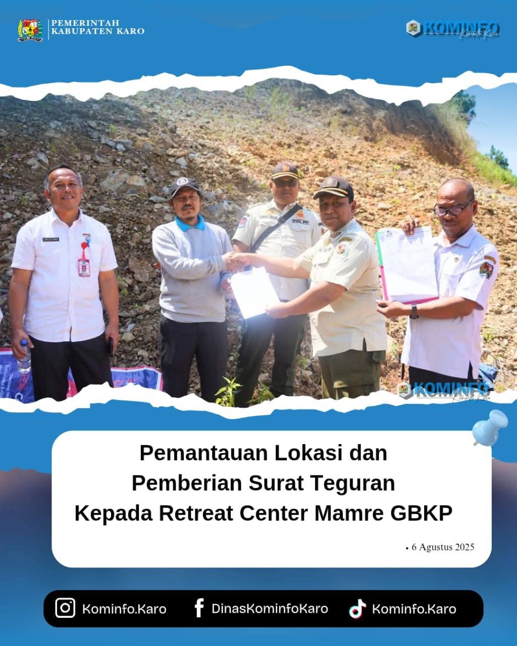 Pada kunjungan Pemkab. Karo yang dihadiri Tim Terpadu Pengawasan Perizinan Berusaha dan Non Berusaha terdiri dari: Asisten Pemerintahan, Satpol PP, Dinas PMPTSP, Dinas Kominfo, Dinas Lingkungan Hidup, Dinas PUTR, Bagian Hukum, Camat Merek, dan Pemerintah Desa Sibolangit pada hari Rabu (6/8/2025).